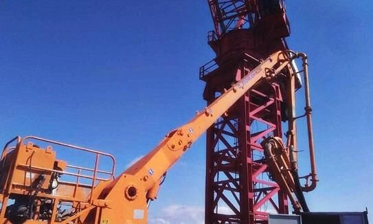 中聯(lián)重科HG20G橫折臂布料機身居泵送高層與地面上的泵王“打配合”