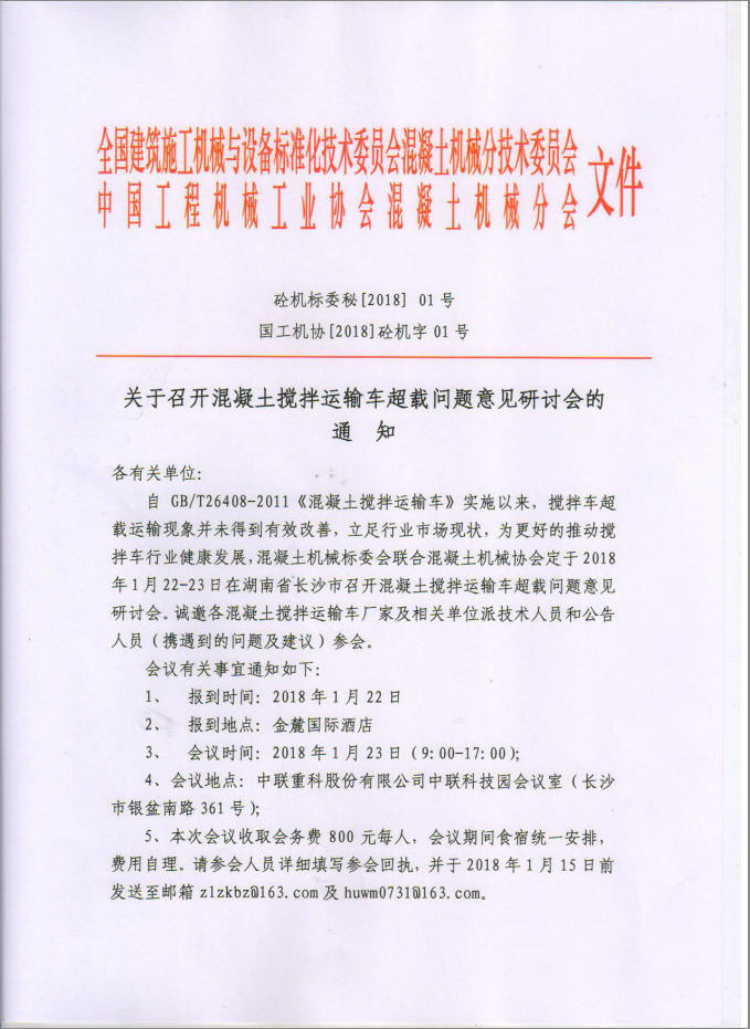 關(guān)于召開混凝土攪拌運(yùn)輸車超載問(wèn)題意見(jiàn)研討會(huì)的通知
