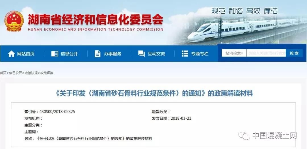 2018年3月2日,湖南省經(jīng)信委《關(guān)于印發(fā)〈湖南省砂石骨料行業(yè)規(guī)范條件〉的通知》(湘經(jīng)信原材料[2018]10號,以下簡稱《規(guī)范條件》)。該《規(guī)范條件》作為全省規(guī)范性文件已報省人民政府登記,經(jīng)省政府法制辦審查并依法登記,統(tǒng)一登記號:HNPR—2018—05001。