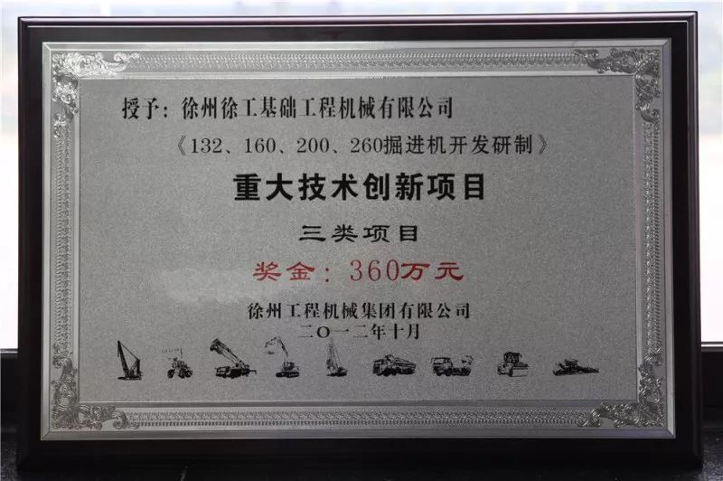 2011年,當(dāng)年9月,徐工基礎(chǔ)推出首臺(tái)具有自主知識(shí)產(chǎn)權(quán)的EBZ160掘進(jìn)機(jī),其成功研制填補(bǔ)了徐工在煤礦掘進(jìn)機(jī)方面的空白,當(dāng)年順利通過(guò)煤安認(rèn)證、實(shí)現(xiàn)銷售;2012年10月,EBZ135、160、200、260系列掘進(jìn)機(jī)被授予徐工集團(tuán)重大技術(shù)創(chuàng)新項(xiàng)目,獲得獎(jiǎng)金360萬(wàn)元。