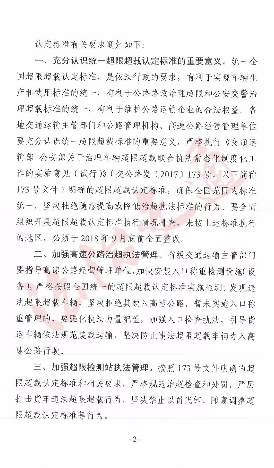 文件強調:部分地區(qū)依然未嚴格執(zhí)行全國統(tǒng)一超限超載認定標準,部分高速公路對超限30%的車輛仍然按照基本費率計重收費,導致高速公路與普通公路治超標準不一致,不同省份執(zhí)法力度不統(tǒng)一等問題。未按標準執(zhí)行的地區(qū),9月底前全面整改。
