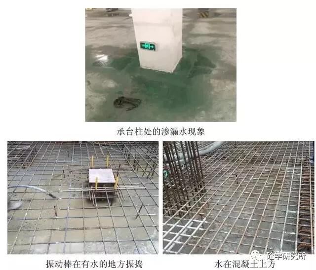 當(dāng)積水停留在混凝土表面時(shí),如振動(dòng)棒在有水的地方振搗,水會(huì)順著振動(dòng)棒棒身周邊的空隙向下流動(dòng),對(duì)混凝土造成擾動(dòng),后期易在該處形成點(diǎn)滲漏。另外,工民建領(lǐng)域,底板上的一些不規(guī)則裂縫,可能僅僅是因?yàn)檫@種薄弱的點(diǎn)過多過密集。