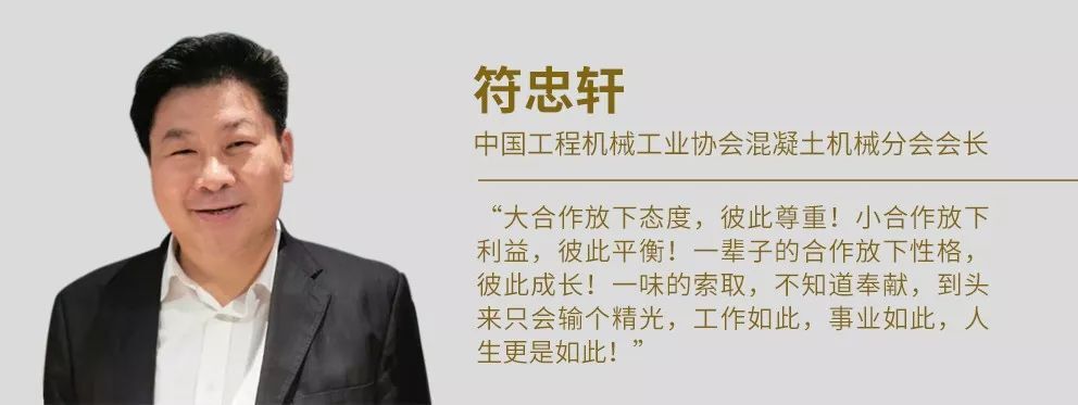 “大合作放下態(tài)度,彼此尊重!小合作放下利益,彼此平衡!一輩子的合作放下性格,彼此成長!一味的索取,不知道奉獻,到頭來只會輸個精光,工作如此,事業(yè)如此,人生更是如此!”符會長希望行業(yè)同仁一起,以更加合作開放的心態(tài),共同推動未來工程機械行業(yè)的繁榮發(fā)展。