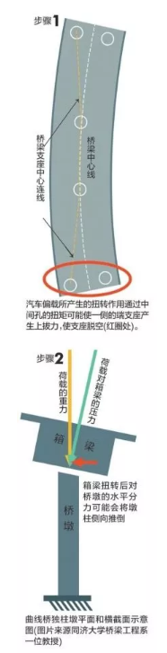 同濟大學橋梁工程系專家分析,曲線橋獨柱墩設計存在小概率隱患,國內(nèi)車況復雜或增大事故概率