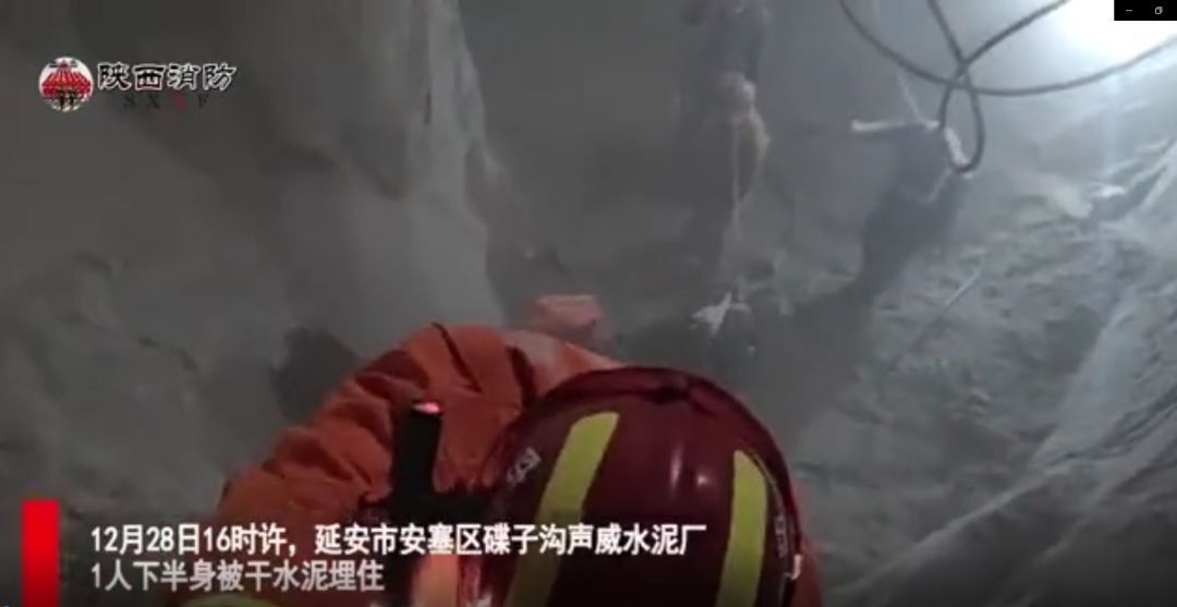 延安消防消息:12月28日16時(shí)許,位于陜西省延安市安塞區(qū)碟子溝聲威水泥廠1人下半身被干水泥埋住,消防員趕到現(xiàn)場(chǎng)后,迅速制定救援方案并開展救援。首先中隊(duì)指戰(zhàn)員讓被困人員保持冷靜不要有大幅度動(dòng)作等待救援。
