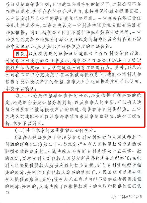 關鍵在于,最高院是“從舉證責任和舉證妨礙的角度可以推定凱迪公司存在制造銷售行為”。