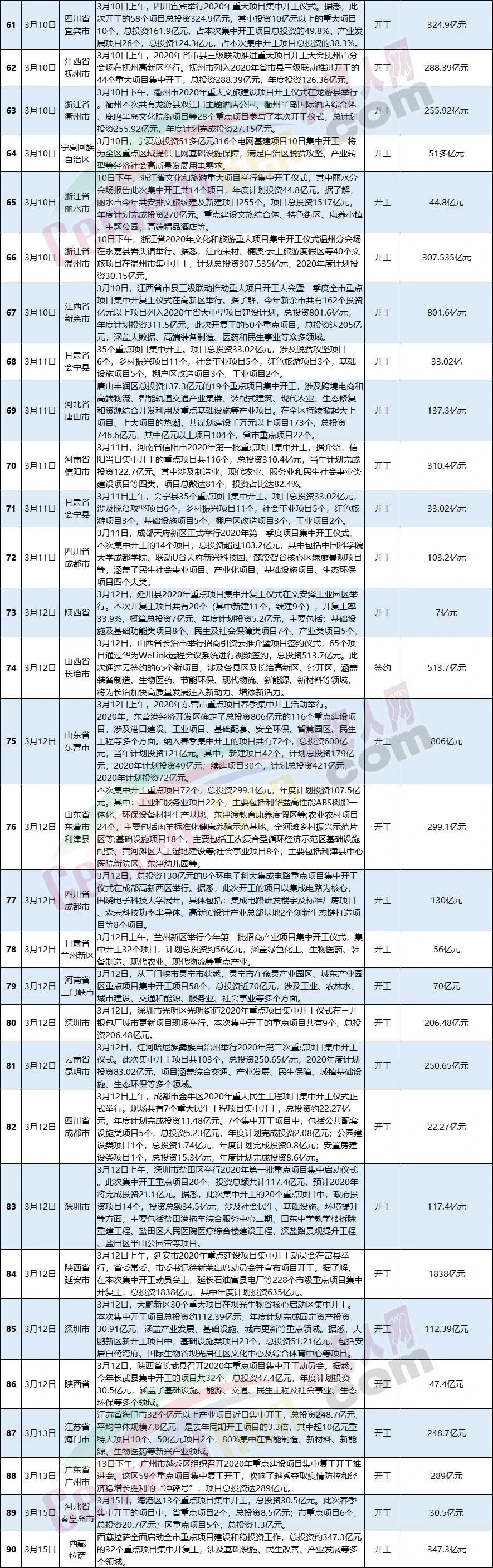 3月全國(guó)新開(kāi)工和簽約項(xiàng)目一覽表