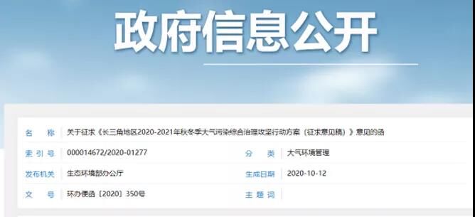 長三角地區(qū)2020-2021年秋冬季大氣污染綜合治理攻堅行動方案