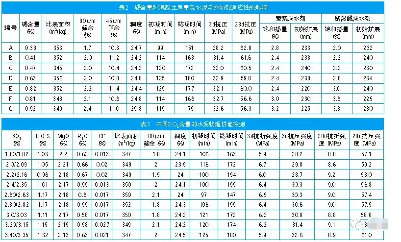 所以綜合考慮水泥強(qiáng)度及水泥與減水劑的適應(yīng)性,堿含量不宜超過0.8%,對(duì)聚羧酸減水劑而言,堿含量可盡量再低一些,盡量不超0.7%。