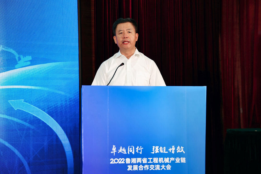 山東省工業(yè)和信息化廳副廳長(zhǎng)靖士寬表示:“山東是裝備制造業(yè)大省,產(chǎn)品種類豐富,農(nóng)業(yè)機(jī)械、機(jī)械基礎(chǔ)件、鑄造、工程機(jī)械、內(nèi)燃機(jī)、醫(yī)療設(shè)備、汽車行業(yè)居全國(guó)前列。從產(chǎn)業(yè)規(guī)模、競(jìng)爭(zhēng)力、影響力等方面來(lái)看,湖南省、山東省都是工程機(jī)械強(qiáng)省,都承擔(dān)著國(guó)家工程機(jī)械產(chǎn)業(yè)鏈供應(yīng)鏈安全的重任,‘優(yōu)勢(shì)互補(bǔ)、協(xié)同創(chuàng)新、合作共贏’將會(huì)成為我們兩省下一步合作的主旋律。這次共同舉辦2022魯湘兩省工程機(jī)械產(chǎn)業(yè)鏈發(fā)展合作交流大會(huì),是推動(dòng)湖南、山東兩省工程機(jī)械產(chǎn)業(yè)發(fā)展,促進(jìn)兩省產(chǎn)業(yè)鏈企業(yè)合作,打通兩省產(chǎn)業(yè)鏈協(xié)作創(chuàng)新,引領(lǐng)全國(guó)工程機(jī)械產(chǎn)業(yè)發(fā)展的重要實(shí)踐。”