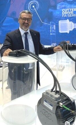 首席執(zhí)行官Fausto Carboni在慕尼黑舉行的2022Bauma展上展示用于建筑機械的新型電力驅(qū)動裝置。
