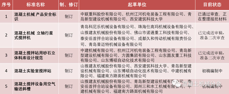 今年在廣州召開(kāi)了團(tuán)體標(biāo)準(zhǔn)第五次全體會(huì)議并評(píng)審了三項(xiàng)標(biāo)準(zhǔn):《混凝土機(jī)械 立軸行星式攪拌機(jī)》、《混凝土機(jī)械安全標(biāo)識(shí)》、《混凝土攪拌站用砂石立體料庫(kù)設(shè)計(jì)規(guī)范》。