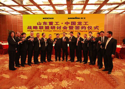 山東重工集團有限公司總經理江奎先生和中國龍工控股有限公司首席執(zhí)行官兼總裁邱德波先生,代表各自企業(yè)共同訂立了《戰(zhàn)略合作協議》,攜手打造轉型升級、創(chuàng)新發(fā)展戰(zhàn)略聯盟的新航母。