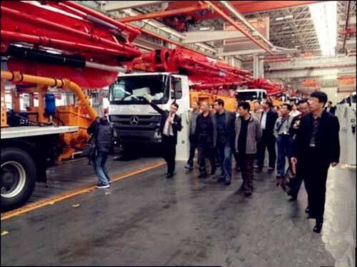 25日上午,考察團(tuán)全體成員在三一重工一號(hào)會(huì)議室召開(kāi)了2014年度山東省混凝土協(xié)會(huì)會(huì)長(zhǎng)工作會(huì)議,三一重工泵送營(yíng)銷(xiāo)公司副總經(jīng)理王暾先生致歡迎詞,會(huì)議對(duì)2014年全年工作進(jìn)行部署、攪拌站評(píng)優(yōu)等問(wèn)題展開(kāi)討論。12點(diǎn)40分,考察團(tuán)參觀了三一產(chǎn)業(yè)園,一進(jìn)廠區(qū),一排排鮮紅锃亮的混凝土泵車(chē)像是巨人般列隊(duì)歡迎,亞洲最大的花園式18號(hào)廠房、一塵不染的總裝車(chē)間、豐富多彩的企業(yè)文化、振奮人心的發(fā)展前景,讓考察團(tuán)領(lǐng)導(dǎo)班子頻頻點(diǎn)贊,感嘆三一不愧為世界級(jí)工程機(jī)械制造商,充分肯定了三一重工在混凝土行業(yè)中的龍頭地位。參觀后,考察團(tuán)集體合影留念。