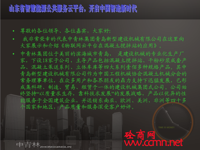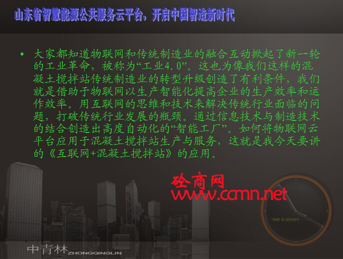 新型建機(jī)徐君飛參加山東智慧能源公共服務(wù)平臺(tái)開通儀式,就物聯(lián)網(wǎng)對(duì)攪拌站的應(yīng)用進(jìn)行闡述。