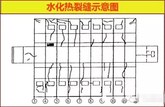 水化熱裂縫一般特征:有表層裂縫、內(nèi)部裂縫、底層裂縫、貫穿裂縫、非貫穿裂縫和轉(zhuǎn)角、截面突變部位及孔洞角部的熱應(yīng)力集中裂縫等類型。就其裂縫形狀而言,有龜裂縫或放射狀裂縫、水平裂縫、豎向裂縫、斜向裂縫等。