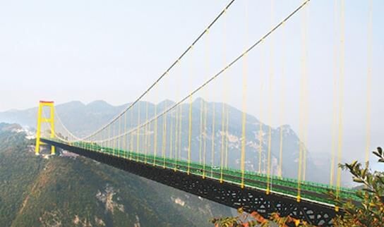 中聯(lián)重科塔機產品參建世界第一高橋龍?zhí)逗犹卮髽颍胺Q“天路中的天橋”。大橋主跨900米,索塔頂距谷底650米,橋面距谷底560米,相當于200層樓高,比目前世界最高橋法國米約大橋分別高307米和290米。大橋的另一端距離公路隧道23米,借助火箭彈發(fā)射先導索過峽谷,開創(chuàng)了國內乃至世界建橋史上的先河。龍?zhí)逗犹卮髽虻淖畲髽蚨崭哌_178米,創(chuàng)下連續(xù)鋼構箱梁橋墩高度的世界之最,被譽為“世界第一高懸索橋”。