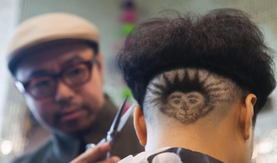 27歲的發(fā)型師Nariko在一名男性顧客的頭上創(chuàng)作了內(nèi)馬爾肖像發(fā)型,惟妙惟肖引圍觀。
