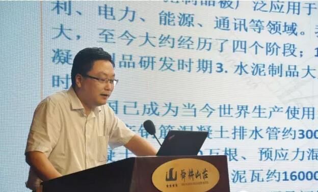 ▼ 中國混凝土與水泥制品工業(yè)協(xié)會排水管專家褚建中做“綜合管廊及海綿城市的預(yù)制混凝土構(gòu)件”的演講;