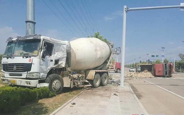 近日,劉某駕駛混凝土攪拌車經(jīng)過十字路口時闖紅燈,與一輛拉載石塊的大貨車相撞,導(dǎo)致石塊散落一地,兩棵行道樹和一根燈桿被撞倒。