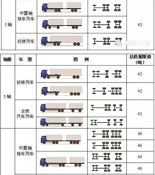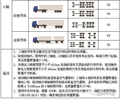 按照《道路車輛外廓尺寸、軸荷及質(zhì)量限值》確定的最大質(zhì)量限值作為認(rèn)定標(biāo)準(zhǔn)。其中,最大的變化是6軸車由55噸變?yōu)?9噸。
