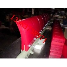 H型高分子聚氨酯清掃器 適用于清掃卸載滾筒處皮帶上粘附的物料,可分雙向刀頭和單向刀頭 屬于頭道清掃器??勺詣诱{(diào)節(jié)清掃器刮板與輸送機(jī)膠帶之間的接觸壓力,保證了刮板與運行的膠帶受力在一定合適的范圍之內(nèi),使清料既干凈,又不損壞膠帶。