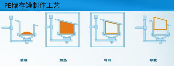 滾塑工藝的制作過程較為簡單,我們將滾塑制作的步驟簡化為以下的圖解: