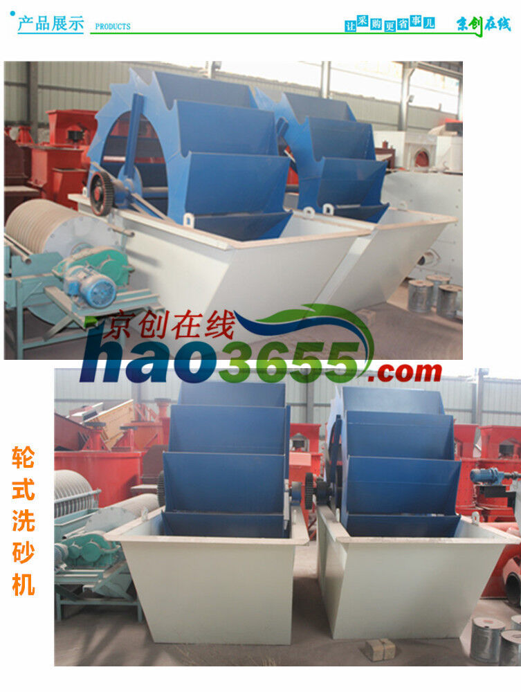 工作時(shí),電機(jī)通過三角帶、減速機(jī)、齒輪減速后帶動(dòng)葉輪緩慢轉(zhuǎn)動(dòng),砂石有給料槽進(jìn)入洗槽中,在葉輪的帶動(dòng)下翻滾,并互相研磨,除去覆蓋砂石表面的雜質(zhì),同時(shí)破壞包覆砂粒的水汽層,以利于脫水;同時(shí)加水,形成強(qiáng)大水流,及時(shí)將雜質(zhì)及比重小的異物帶走,并從溢出口洗槽排出,完成清洗作用。干凈的砂石由葉片帶走,最后砂石從旋轉(zhuǎn)的葉輪倒入出料槽,完成砂石的清洗作用。