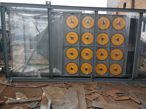 是現(xiàn)在國(guó)內(nèi)除塵效率最好的除塵設(shè)備。濾筒除塵器主要是由進(jìn)風(fēng)管、灰斗、箱體、清灰裝置、導(dǎo)流裝置、濾筒、氣流分布板及電控裝置組成的。花板下部是過濾室,上部是氣箱脈沖室。在濾筒除塵器入口的位置裝有氣流分布板。濾筒可以垂直布置在箱體花板上,也可以傾斜的布置在花板上。從清灰的效果上看,垂直方向的布置的比較合適。隨著科學(xué)技術(shù)的發(fā)展,新的材料也在不斷發(fā)展中。濾筒除塵器的整體容量也增加了。它的過濾面積比原來增大了。