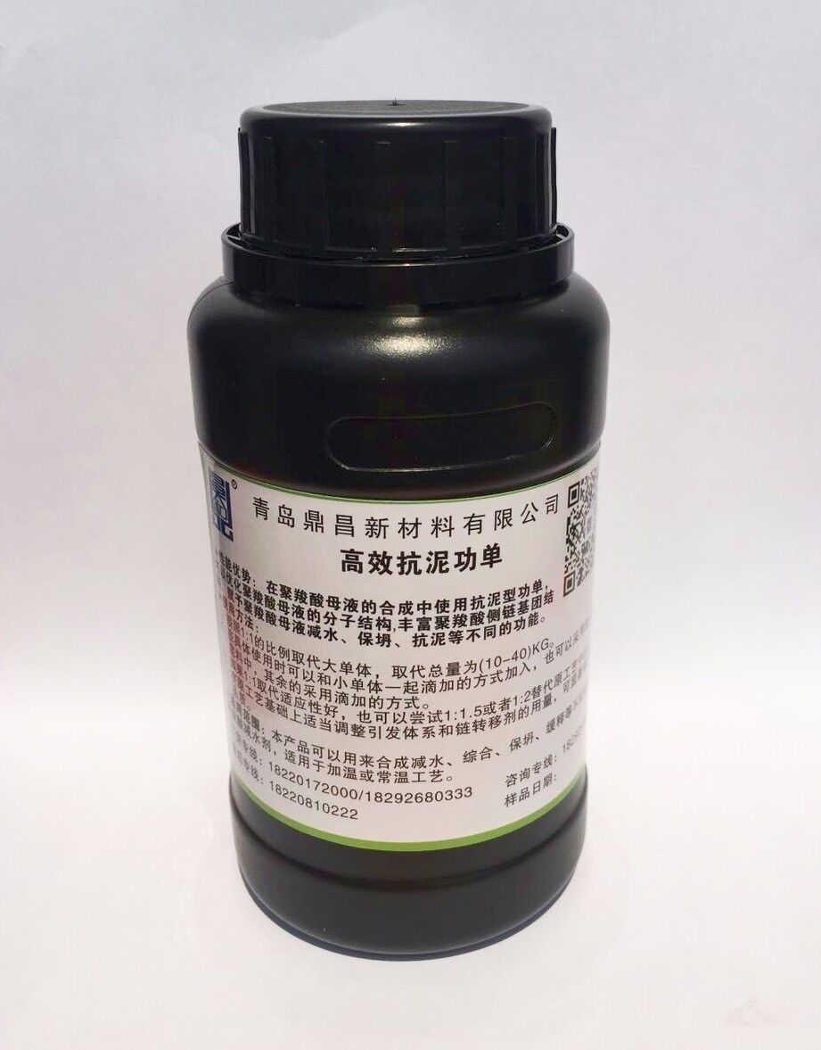 高效抗泥功單是青島鼎昌新材料有限公司獨立研發(fā)的一種應用于聚羧酸母液合成的功能性單體。該產(chǎn)品是基于分子設計的理念,利用有機合成的技術合成的一種可用于自由基聚合的不飽和單體。它的分子結(jié)構(gòu)既不同于不飽和醇聚氧乙烯醚(大單體),又不同于丙烯酸、丙烯酸羥乙酯、甲基烯丙基磺酸鈉等小單體,它可以吸附在膠凝材料顆粒表面,起到“錨固”作用,也可以起到空間位阻的作用。xhudli$&159*