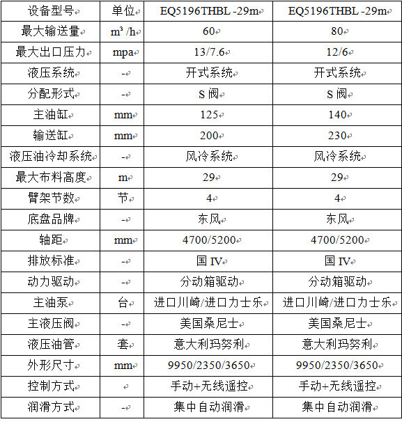 攪拌一體臂架泵車(chē)基本配置表