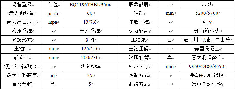 攪拌一體臂架泵車(chē)基本配置表