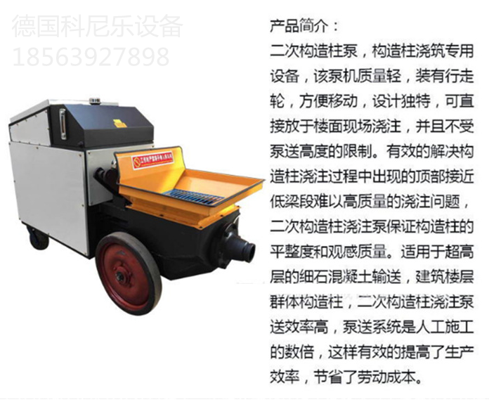 1、 二次構(gòu)造柱泵可實(shí)現(xiàn)遠(yuǎn)距離高層建筑細(xì)石混凝土、砂漿等輸送。