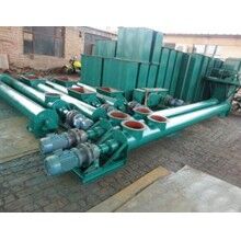 螺旋輸送機(jī)螺旋面的形式有實(shí)體螺旋(S制法)和帶式螺旋(D制法)兩種。各螺旋軸之間采用法蘭式聯(lián)接, 保證了聯(lián)接軸的互換性,便于維修。 螺旋輸送機(jī)機(jī)蓋為瓦片式并用蓋扣夾緊在機(jī)殼上,若需改進(jìn)密封性能,用戶可自行在機(jī)蓋與機(jī)殼間加防水粗帆布。 螺旋輸送機(jī)進(jìn),出料裝置有進(jìn)料口,方型出料口,手推式出料口,齒條式出料口四種,由用戶在使用現(xiàn)場(chǎng)在機(jī)體上開口焊接。布置螺旋輸送機(jī)進(jìn),出料口位置時(shí)應(yīng)注意保證料口至端部的距離,同時(shí)避免料口與吊軸承加油杯,機(jī)殼聯(lián)接法蘭,底座等相碰。