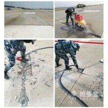 首先從材料選擇上來說,除了要求材料需要通行速度快之外,還要滿足機場道面高抗壓力,高耐磨性以及應對惡劣的氣候及自然條件,在綜合比對后,選擇了快速修補材料。15分鐘凝固,1小時快速通航,強度高、耐久性強。1小時強度可達30MPA以上,高出普通C30水泥混凝土30天強度,且耐久性好,耐磨防腐蝕。施工簡便,無需灑水養(yǎng)生