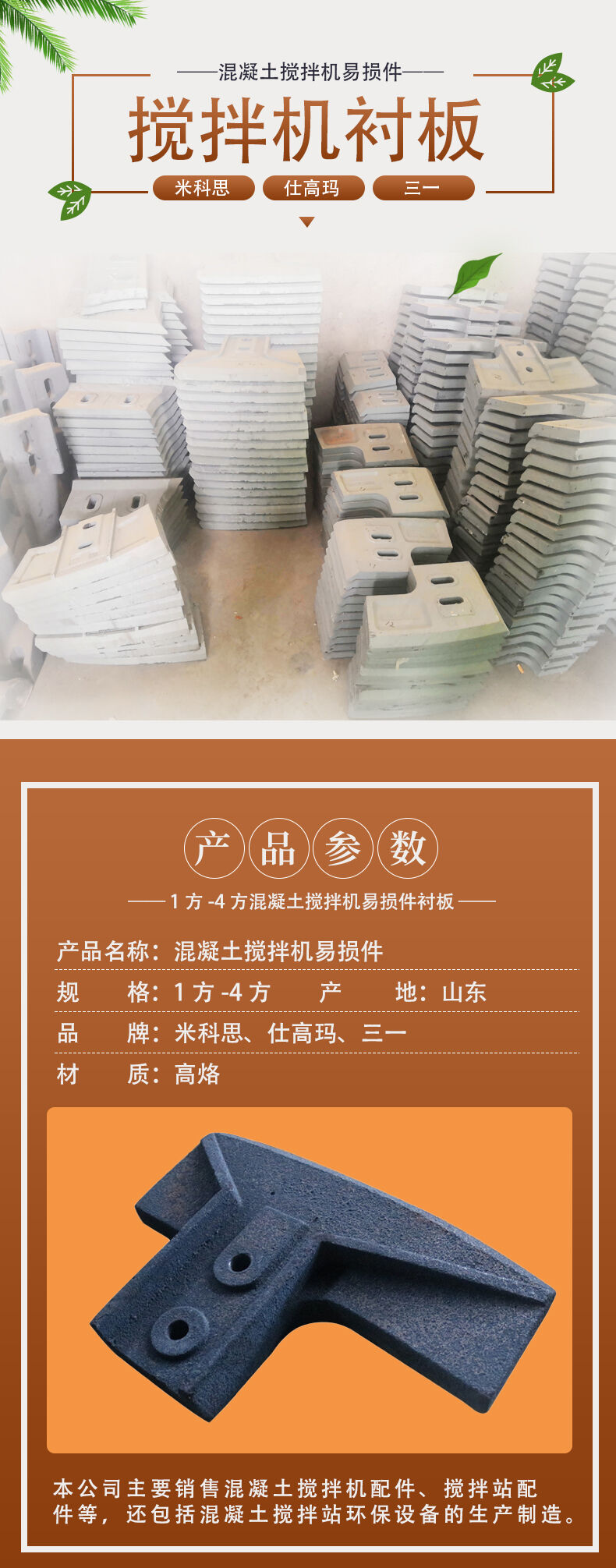 仕高瑪、三一、米科思各型號(hào)的攪拌襯板易損件。