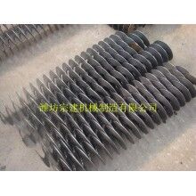 公司生產(chǎn)的螺旋葉片選用優(yōu)質(zhì)冷軋鋼帶,連續(xù)軋制,中間無焊縫,表面光滑耐磨,廣泛用于農(nóng)業(yè)、工業(yè)、建筑等輸送攪拌機械,工礦開采機械。螺旋軸采用焊后兩軸頭精車,保證了軸兩端的同軸度。每條攪龍都經(jīng)過動靜平衡,減少了整機的振動。本廠軋出的葉片材質(zhì)是碳鋼板,304不銹鋼,65錳高碳鋼板。特別是碳鋼板,葉片的表面產(chǎn)生冷硬化,硬度和耐磨性提高2-3倍。