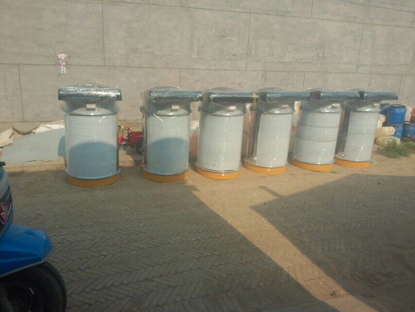 倉頂單機除塵器的結(jié)構(gòu):倉頂單機除塵器是一種圓形可拆的金屬濾筒,底板上有14個嵌入圓形孔,它設(shè)有14個濾芯,扎緊在上端1個振動器的吊架上,定時震動,使濾芯阻留下來的灰塵降落在倉內(nèi)。