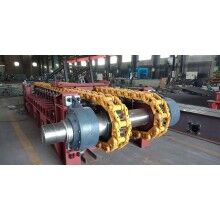 張緊裝置采界螺旋拉緊,使得履帶鏈條調(diào)整簡(jiǎn)單靈活。被動(dòng)軸上安裝有兩個(gè)通過淬火處理的被動(dòng)鏈輪,可確保鏈條正常運(yùn)行。
