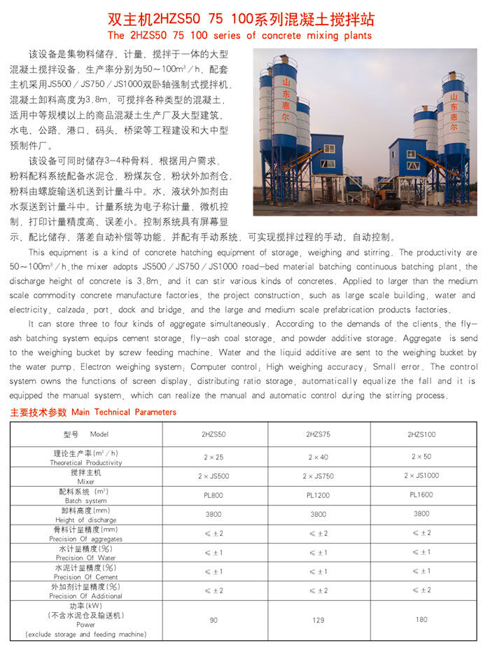 歸屬行業(yè):雙主機2HZS75混凝土攪拌站