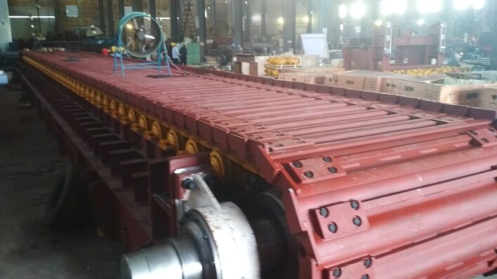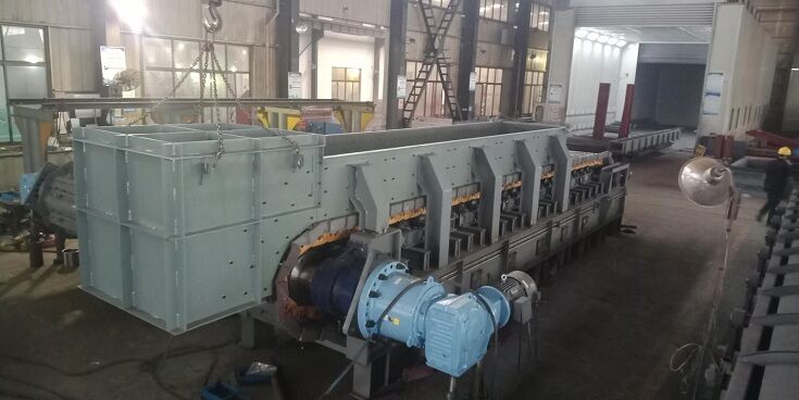 如果板式給料機(jī)和皮帶機(jī)在同一個(gè)方向布置,也就是說是在一條直線上布置,那么板式給料機(jī)的寬度一般和皮帶機(jī)的寬度一樣。比如800寬的皮帶機(jī),可以選800寬的板式給料機(jī),但二者的輸送產(chǎn)量一定要一樣。至于板式給料機(jī)的長度和輸送角度,則由現(xiàn)場使用布置要求確定,一般選型長度在3-15米之間,安裝角度一般不操過20°。