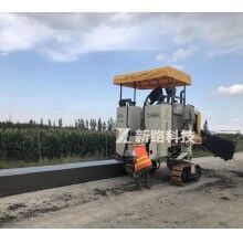 該設(shè)備采用三履帶行走驅(qū)動(dòng),水泥混凝土經(jīng)過輸料裝置,進(jìn)入成型模具,然后通過振動(dòng)棒振動(dòng)和模具擠壓,一次攤鋪成型用戶需要的水泥結(jié)構(gòu)物。通過更換模具及對(duì)車輛和模具狀態(tài)的精確調(diào)整和控制可以實(shí)現(xiàn)各類路緣石、硬路肩、防撞墻、公路中央分隔帶、水溝/匯水槽/排水槽、下水道及安全環(huán)島等不同輪廓水泥混凝土結(jié)構(gòu)物的精準(zhǔn)鋪筑。