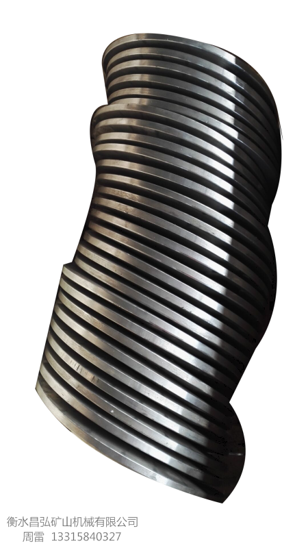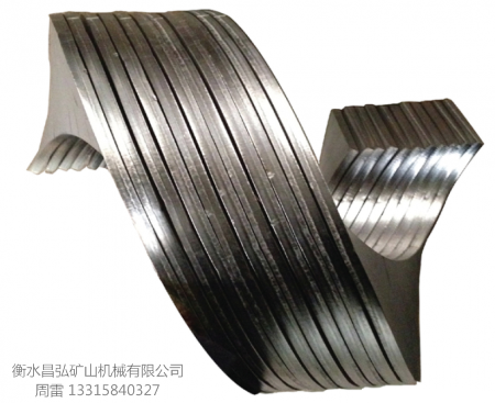 絞龍葉片具有剛性好,表面光潔,形狀規(guī)整,內(nèi)外徑可調(diào),長短可定,精度高,便于安裝,避免了傳統(tǒng)的手工焊接葉片因焊接質(zhì)量造成的弊端,也提高了絞龍葉片的加工能力,扎出的絞龍葉片材質(zhì)是碳鋼板,Q235,Q345和304不銹鋼板,特別是碳鋼板,絞龍葉片表面產(chǎn)生冷作硬化,硬度和耐磨性提高一倍左右,特別是外沿硬度可達HB240,希望廣大用戶不必擔心邊緣薄的原因,此設(shè)備可調(diào)試扎出幾十種規(guī)格的絞龍葉片。