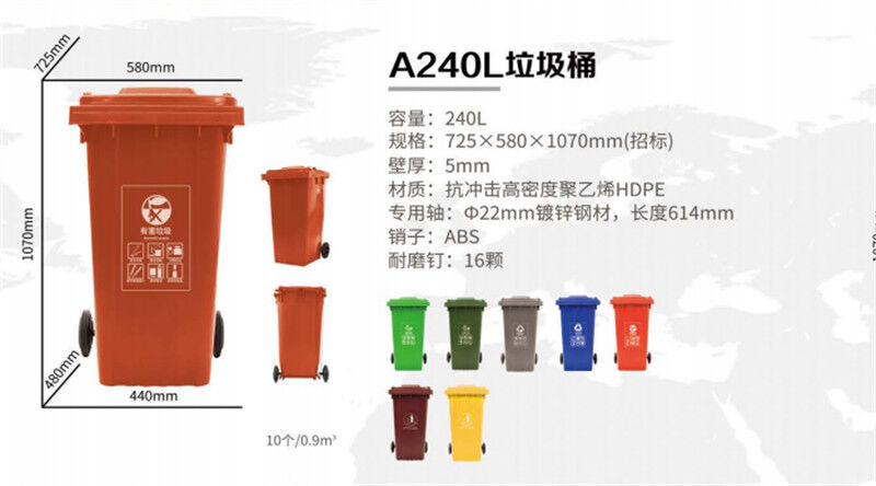 塑料分類垃圾桶經(jīng)久耐用,輕巧靈活,外型美觀,利于環(huán)保,置負(fù)載后輪,可跨越梯級或路邊臺階,內(nèi)外表面光潔,便于倒空垃圾與清洗,用于各類公共場所收集廢棄物或原料搬運,大大提高工作效率,計符合人體工程學(xué)。2 特點用優(yōu)質(zhì) 工程材料制造輕便耐用,移動靈活。種色彩,適用于不同的環(huán)境與垃圾分類收集。
