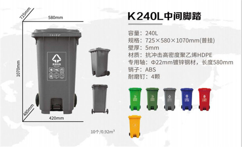 240L塑料垃圾桶/塑料環(huán)衛(wèi)垃圾桶,桶蓋密合,可防止異味散發(fā),雨水侵入,蚊蠅滋生,桶身可相互套疊,方便運輸,節(jié)省儲運空間與費用,桶內(nèi)外表面光潔,便于倒空垃圾與清洗,垃圾桶設(shè)計符合 人體工程學(xué),輕便耐用,移動靈活。產(chǎn)品賣點。240L塑料垃圾桶價格不浪費,讓城市更美觀少占地:生活垃圾中有些物質(zhì)不易降解,使土地受到嚴(yán)重侵蝕。垃圾分類,去掉能回收的,不易降解的物質(zhì),減少垃圾數(shù)量達(dá)50%以上。少環(huán)境污染:廢棄的電池含有金屬。約資源鎘等有害的物質(zhì)。