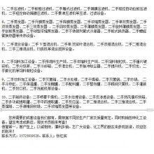 主要包括二手離心機,臥螺離心機,二手碟式離心機,二手臥式螺旋沉降離心機,二手反應(yīng)釜,二手不銹鋼反應(yīng)釜,二手搪瓷反應(yīng)釜,二手搪玻璃反應(yīng)釜,二手壓濾機,二手板框壓濾機,二手箱式壓濾機,二手過濾機,二手干燥機,二手管束干燥機,二手流化床干燥機,氣流干燥機,管束干燥機,滾筒干燥機,二手閃蒸干燥機,二氣流噴霧干燥機,壓力噴霧干燥機,離心噴霧干燥機,并流噴霧干燥機,冷凍干燥機,真空干燥機,雙錐回轉(zhuǎn)真空干燥機,二手蒸餾塔,二手酒精塔,二手振動篩,流化床振動篩,蒸餾釜,二手貯罐,不銹鋼儲罐,玻璃鋼儲罐,臥式儲罐,防腐儲罐,液氨儲罐,二手蒸發(fā)器,薄膜蒸發(fā)器,雙效蒸發(fā)器,三效蒸發(fā)器,二手高頻振動篩,二手振動篩,二手導(dǎo)熱油爐,二手蒸汽鍋爐,二手米糠油機械,二手胚芽油機械,二手榨骨機設(shè)備,二手蒸脫機,二手蒸炒鍋,二手軟化滾筒、軋胚機、烘干機、剝殼機、振動流化床干燥機、圓篩、振動篩、平篩、膨化機及進口膨化機、板框過濾機、振動排渣葉片過濾機、冬化過濾機、離心機、阿法拉發(fā)碟式分離機、脫皂機、冷凝器、換熱器、水化罐、精煉罐、脫臭罐、脫色罐、立絞籠、平絞籠、提升機等,進出口色拉油設(shè)備、生化油設(shè)備、氫化油設(shè)備、生物柴油設(shè)備、設(shè)備及各種零配件等。