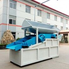 振動式砂石分離機利用振動電機激振作為振動源,是物料再篩網(wǎng)上唄拋起,同時向前直線運動,物料自罐車均勻地進入篩分機的前段,沖洗的同時,通過制定規(guī)格的篩網(wǎng)分出篩上物、篩下物,石子沿振動篩方向流入石子儲料池,砂子經(jīng)篩孔漏下,由螺旋輸送機輸送到砂池。砂石用直線篩采用柔性驅(qū)動,其偏心塊所產(chǎn)生的激振力、驅(qū)動振動篩往復(fù)式平行復(fù)擺雙方向運動,使混合料分離,從而達到對物料進行篩選和分級的目的。