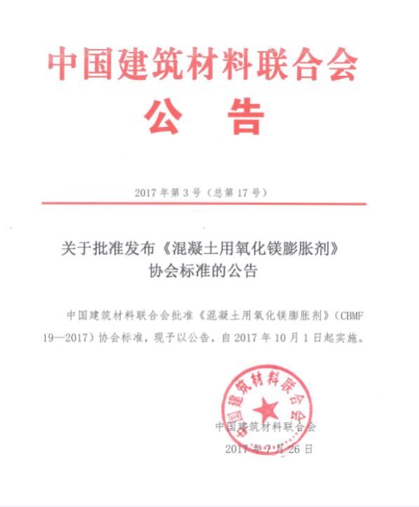 2017年7月,由中國混凝土與水泥制品協(xié)會(huì)(以下簡稱協(xié)會(huì))組織制定的《預(yù)制混凝土箱涵工藝技術(shù)規(guī)程》和《混凝土用氧化鎂膨脹劑》兩項(xiàng)協(xié)會(huì)標(biāo)準(zhǔn),通過審定并發(fā)布批準(zhǔn)公告,標(biāo)準(zhǔn)號(hào)分別為CBMF 18-2017和CBMF 19-2017,將同時(shí)于2017年10月1日起實(shí)施。這是國務(wù)院《深化標(biāo)準(zhǔn)化工作改革方案》(國發(fā)[2015]13號(hào))及質(zhì)檢總局、國家標(biāo)準(zhǔn)委《關(guān)于培育和發(fā)展團(tuán)體標(biāo)準(zhǔn)的指導(dǎo)意見》(國質(zhì)檢標(biāo)聯(lián)[2016]109號(hào))發(fā)布后,協(xié)會(huì)與中國建筑材料聯(lián)合會(huì)(以下簡稱聯(lián)合會(huì))聯(lián)合發(fā)布的首批協(xié)會(huì)標(biāo)準(zhǔn),兩項(xiàng)標(biāo)準(zhǔn)將公開出版并發(fā)行。