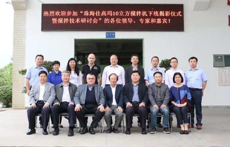 2018年4月18日,珠海仕高瑪公司10立方攪拌機下線揭彩儀式暨攪拌技術(shù)研討會在珠海仕高瑪公司舉行,中國工程機械協(xié)會混凝土機械分會符忠軒會長、長安大學(xué)馮忠緒教授、趙利軍博士、廣東長大公路工程公司楊東來總工程師、河南萬里路橋李冠峰總工程師、許昌德通特種混凝土公司孟超總經(jīng)理等領(lǐng)導(dǎo)、專家和嘉賓應(yīng)邀出席儀式和研討會,珠海仕高瑪公司股東黃志輝先生、意大利SICOMA公司董事長Mr. Galletti、總工程師Marco、珠海仕高瑪公司總經(jīng)理郗俊峰先生、財務(wù)總監(jiān)唐志敏女士及公司技術(shù)研發(fā)團隊、生產(chǎn)團隊、銷售團隊、售后團隊參加本次活動。