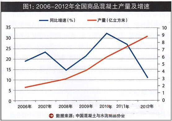 2012年前三季度,房地產調控和重點在建續(xù)建大型工程項目啟動緩慢,商品混凝土市場需求大幅下降,前三季度累計同比增長7.9%,到了第四季度增幅有所回升,最終全年增速在11%。